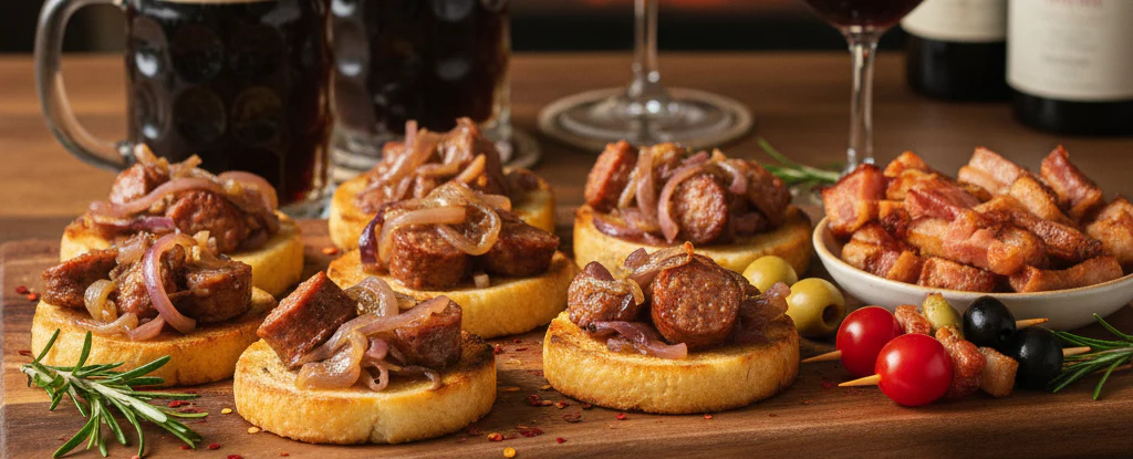 Si buscas una mezcla que sorprenda, combina Longaniza Chillán salteada con un poco de vino blanco y cebolla morada, servida en pequeñas porciones sobre tostadas. El resultado es un picoteo cálido, sabroso y perfecto para maridar con cerveza artesanal o vino tinto. También puedes sumar trozos de Pancetta Ahumada al horno hasta que estén crocantes: irresistibles como snack o para coronar mini brochetas con aceitunas y tomates cherry.