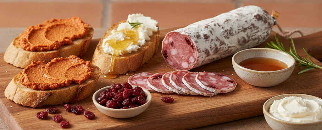 Si te atraen los sabores más atrevidos, la Sobrasada medio picante es tu aliada. Úntala sobre pan crujiente y acompáñala con un hilo de miel o un toque de queso crema para equilibrar su sabor. También puedes probar con rodajas de Fuet Cranberry, una opción sorprendente que combina lo dulce, lo salado y lo curado en una sola mordida.